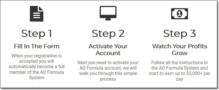 The AD Formula system promises to provide its members with a “shortcut” for earning as much as $3,000 per day online right from the very same day they get started even if they have absolutely no prior experience at all.