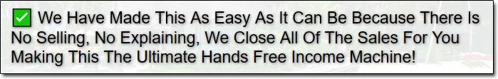 As shown in the screenshot below he says that there’s no selling, no explaining & that they close all of the sales for you which allegedly makes it the “ultimate hands-free income machine”: