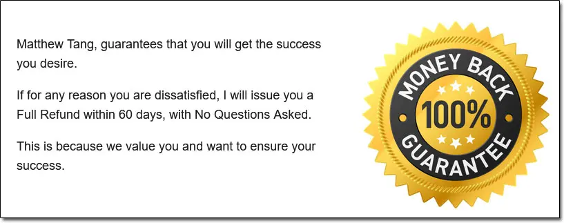 This means that whilst Matthew himself may make it difficult for you to get a refund, you can just apply directly to ClickBank for a refund & they will be able to sort it out for you.