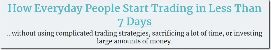 Consistent Profits, as Valerie Fox puts it, is a program that can allegedly enable you to start trading in 7 days without using complicated trading strategies, sacrificing a lot of time, or investing large amounts of money.