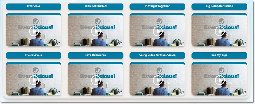 In short, these video tutorials walk you through each and every bit of Fiverr, the settings, profiling, rankings, timing, meeting the deadlines, and negotiating in the case of editing/correction, etc.