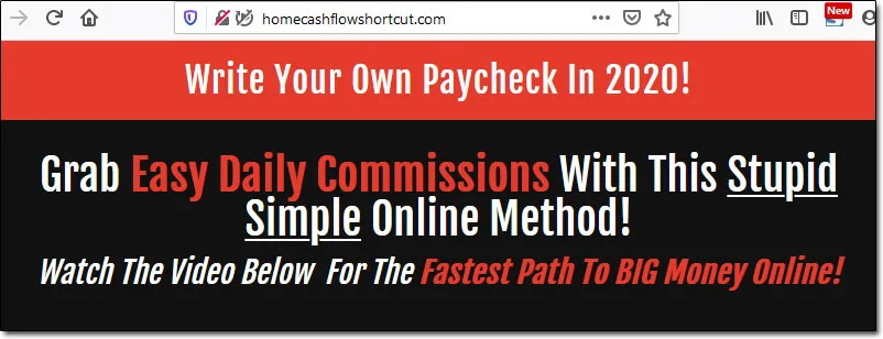 The website promoting it literally says things like “write your own paycheck”, “get easy daily commissions” & “fastest path to big money online” as shown below: