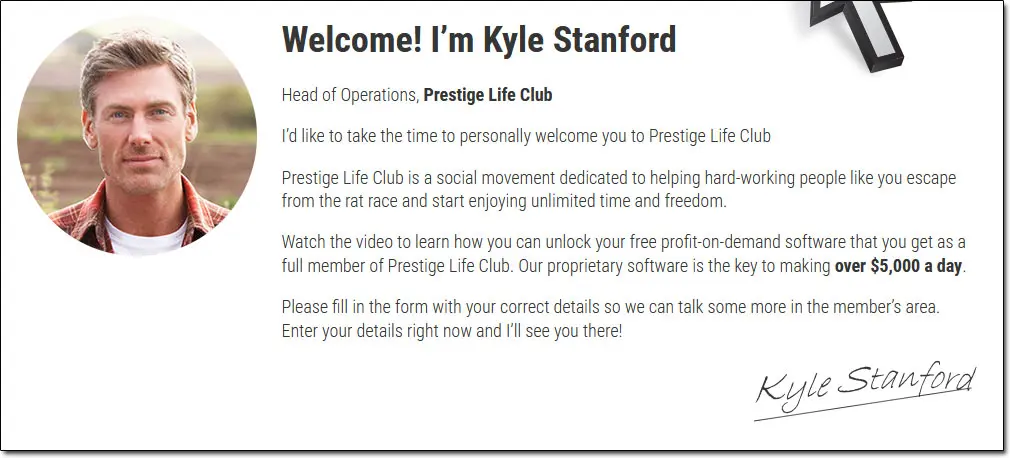 What Is Prestige Life Club?   |   Who Is Kyle Stanford?   |   How Does Prestige Life Club Work?   |   The Red Flags   |   Is Prestige Life Club a Scam?   |   A Better Alternative
