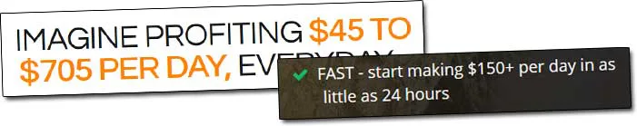 There’s certainly no way that you’ll be able to make as much $150 per day through the Profiteer program & to say that you could achieve such results within just 24 hours of signing up is absolutely outrageous.