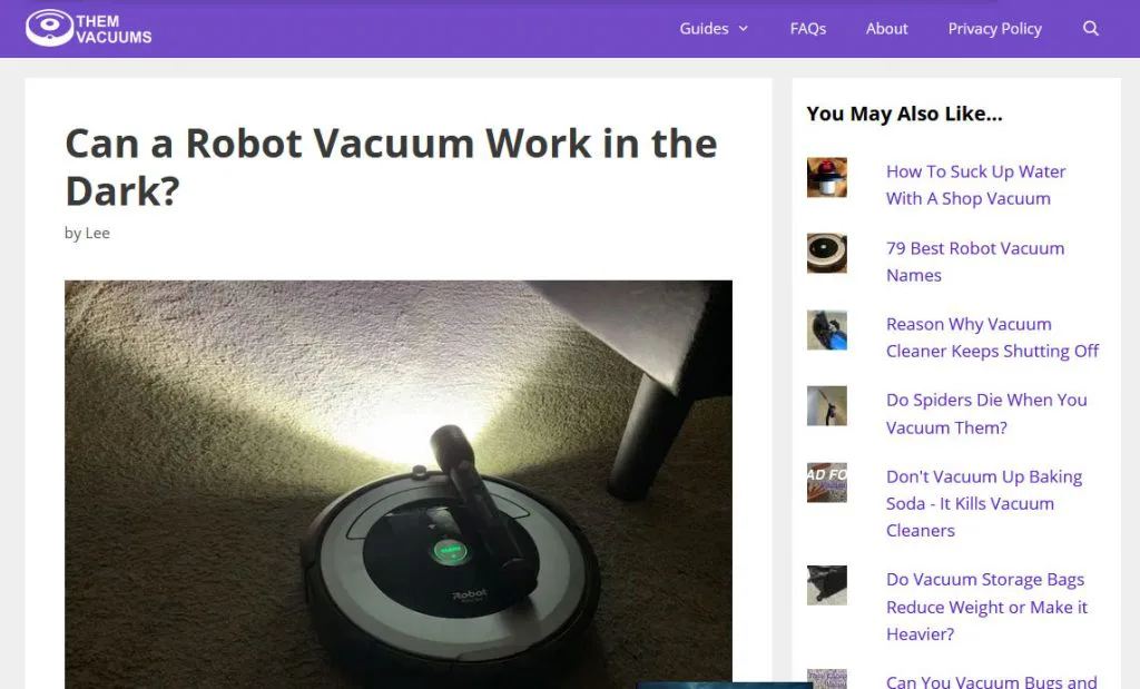 So as an example, rather than creating a broad affiliate website based around “vacuum cleaners”, you could build a narrowed-down niche affiliate website based specifically around “robot vacuum cleaners” (as shown in the example below):