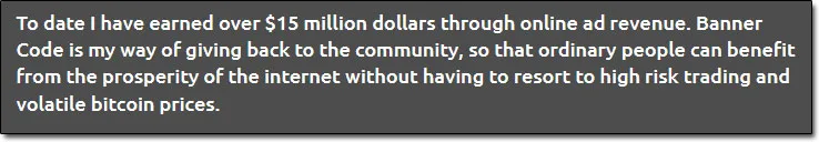 So the concept is that the Banner Code has been built around his “proven method” for generating passive income from ad revenue & you’re led to believe that you can simply sign up, deposit money, pick banners to invest in & then earn a guaranteed revenue each time they’re clicked on.