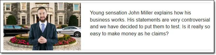 The Trading With John system has allegedly been put together by a guy named John Miller, who according to the Trading With John website is a “young sensation” and “successful online entrepreneur” that’s managed to make millions through online trading.