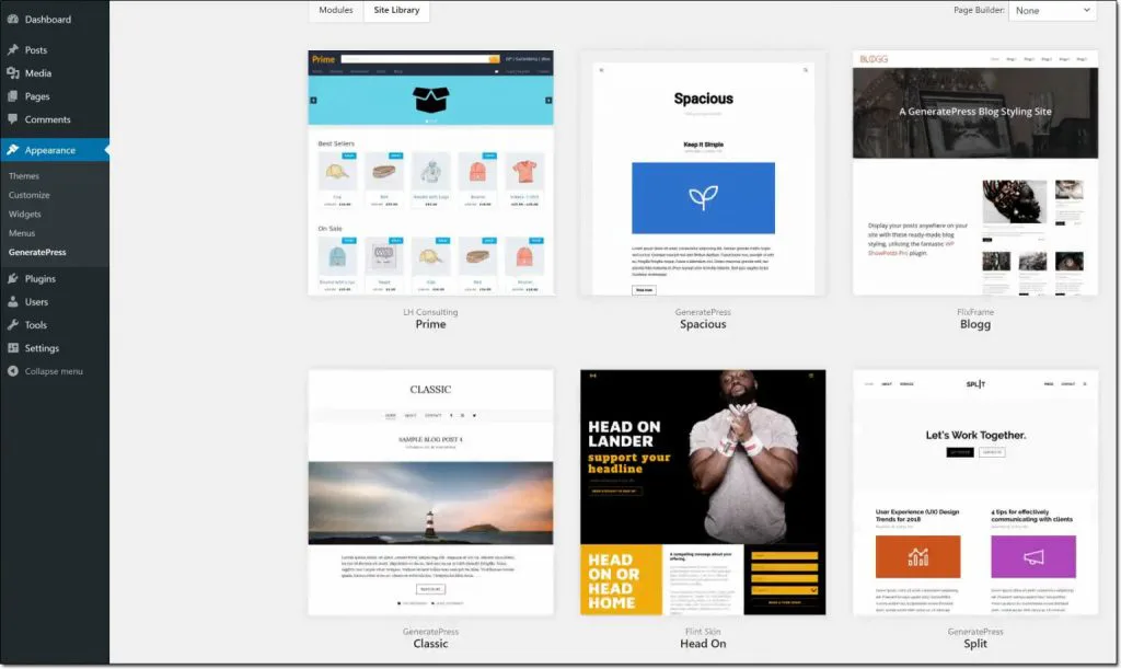 That’s a screenshot of the WordPress admin panel & as you can see there are a bunch of different layouts (known as “Themes”) that you can choose from.