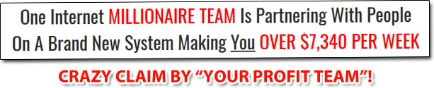 Your Profit Team claims to be a millionaire team that have access to a proven system for generating an “amazing” work from home income & they claim that you can now join their team to begin earning as $7,340 per week…